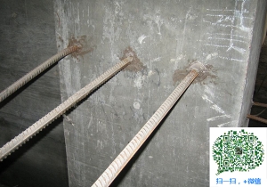检测中,测力计施加的力要小于钢筋的屈服强度、大于由设计部门提供的植筋设计锚固力值。公式为:FM<FC<FYK(FC:测力计施加的力,N/mm2;FYK:钢筋的屈服强度,N/mm2;FM:植筋设计锚固力,N/mm2)检测实验合格后就可进行下道工序。