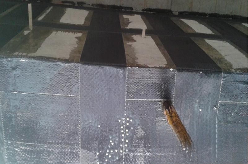 (5)碳纤维布张贴:依照规划要求裁剪碳纤维布,制造浸渍胶,选用滚筒或毛刷将浸渍胶均匀涂改于所张贴部位外表,角落和搭接处恰当多涂改胶水,用润滑滚筒或碳纤维刮刀在碳纤维布外表沿同一方向重复滚压至胶料渗出碳纤维布外外表,去除气泡,使碳纤维布充沛滋润胶料。需求多层张贴时,应重复以上过程,待碳纤维外表指触感枯燥为宜,方可进行下一层碳纤维布的张贴。